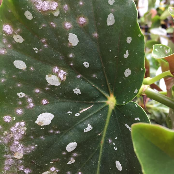 - Ensure the plant is not touching any other plants. Often the begonia mildew strain is unique only to begonias and does not spread to other plant species but it is best to separate them just in case. Ensure all other begonias are socially distanced from each other. If the plant is badly infected or you want to take further action we sell a couple of easy to apply fungal control products that will help. Bring a photo of the affected area in to us or bag up and bring in some affected leaves and we will ensure you purchase the correct product.